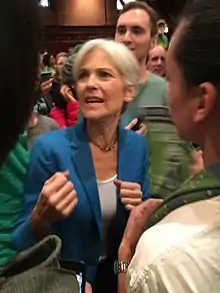 During the 2016 Democratic National Convention, the Green Party encouraged supporters of runner-up Bernie Sanders to back the Greens instead of Hillary Clinton.[20][21] Stein officially won the Green Party nomination on August 6, 2016.[3]