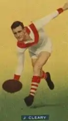 Cleary played as a fullback and won two best and fairest awards for South Melbourne, in 1942 and 1944. He was a highly regarded player, and attracted lucrative offers – an undisclosed amount from Brighton in 1940,[2] and £400 from Camberwell in 1945[3] – to cross to the Victorian Football Association during the throw-pass era, but chose to remain with South Melbourne.