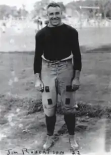 Robertson served in France during World War I, and played on an armed forces football squad in Saumur.[6][7] Upon returning home from war, Robertson played college football for Dartmouth, where he captained the team in 1920 and 1921, was named an All-American in 1919, 1920 and 1921, and was referred to as "one of the supermen of the modern game."[8][9] Robertson played fullback and halfback, and also served as the team's kicker.