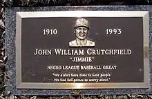Crutchfield died in Chicago in 1993 and was interred in the nearby Burr Oak Cemetery, Alsip, Illinois,[3] buried in an unmarked grave until 2004 when Peoria, Illinois anesthesiologist Jeremy Krock contacted members of the Society for American Baseball Research to try to get a proper headstone on the grave of Crutchfield, who originally comes from the same town as Krock. This launched the Negro Leagues Baseball Grave Marker Project of which Dr. Krock still works with today.[4]