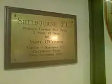 The commemorative plaque in Tolka Park, detailing the quickest hattrick ever, as scored by Jimmy O'Connor on 19 November 1967.