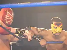 Colin's signing with World Wrestling Entertainment in early 2008 forced Jimmy into full-time singles wrestling, which he proved to be rather good at, defeating the likes of Icarus and Player Uno, while taking Vin Gerard and Gran Akuma to the limit.[2] However, a first round loss to Stupefied in the Young Lions Cup and Vin Gerard revealing where Colin had really gone caused Jimmy to turn against the fans who had grown to love him as he began to unmask several wrestlers, seemingly hunting for Colin.[2] However, when Colin returned in September, Jimmy declared his hunt for Colin to be over, and thus ending his grudge against any masked wrestlers.[2] This did not end well though as Colin determined that Jimmy had become weak, and as a result Colin turned on his brother and joined Vin Gerard and STIGMA to form the UnStable. Now firmly back in the tecnico camp, Jimmy looked to gain adequate revenge on the rudos, who tricked him and betrayed him.[2] He formed a successful tag team with former foe Lince Dorado, and in late 2008 began donning the old Equinox attire, worn originally by Vin Gerard, in an effective attempt to get into his head.[2]