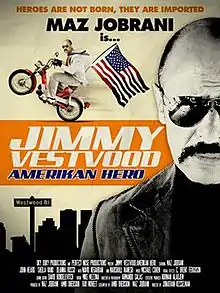 Jimmy Vestvood: Amerikan Hero is a 2014 comedy film directed by Jonathan Kesselman and written by Maz Jobrani and Amir Ohebsion. The films stars Maz Jobrani, John Heard, Deanna Russo, Sheila Vand and Marshall Manesh. The plot follows an Iranian who wins the Green Card lottery and moves to Los Angeles with his mom to pursue his dream of becoming an American hero.
