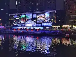 “Night-Tour Jin River” is located on the Jin River Green Road which is along the Jin River in Chengdu, from the Dongmen Pier to He Jiang Ting section. The whole tour takes "Jin River story scroll" as the main storyline, consisting of four parts: Urban Leisure, Dongmen Market, Downtown Meditation and Jin Guan Ancient Courier Station.[8] There are six theme scenes: Night Market, Night Food, Night Exhibition, Night Show, Night Festival, and Night Stay. These themes illustrate the lifestyle of Old Chengdu, Shudu flavor, and international style. There are light shows too.[8]