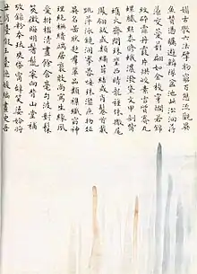Jin Zhang published a four volume manual on the art of painting fish titled Haoliang zhileji in 1922, and it was reprinted over sixty years later in 1986.[14] It was only intended to be a student's manual, but it is now the only known comprehensive treatise on the Chinese tradition of painting fish.[1] She also published a volume of illustrations of cicadas accompanied by poetry written by Hou Rucheng in 1934. The book featured commentary from over dozen individuals including Zhu Ziqing, Shen Yinmo, Liu Yazi, Yu Pingbo, and Xu Shiying.[5]