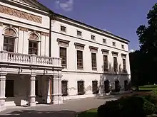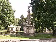 The castle is surrounded by a 4.73 hectares (11.7 acres) large park. It was founded by the Counts of Hodice in the French style in the first half of the 17th century, was adapted to the English-style park in the first half of the 19th century. There is a great variety of rare trees. The park is decorated with several sculptures, the oldest are two marble lions in front of the castle entrance from the 18th century, There is also a fountain and statues of St. Hubert, St. Christopher and Friedrich Schiller.[4]