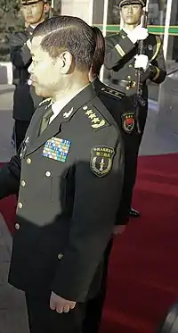 His ancestors are from Linshu, Shandong province, and he was born in Xiangyang, Hubei province. Jing joined the People's Liberation Army in August 1963.[1] From November 1985 to February 1993, he served as the head of the base general staff and the deputy commander of the Second Artillery Corps. He became a major general in the PLA in July 1990. From 1993 to February 1999, Jing served as the commander of the base of the Second Artillery Corps. From 1999 to January 2003, he served as the head of the general staff of the Corps and a member of the Communist Party of China standing committee for it. He became a lieutenant general in July 2000. In 2003, he returned to his previous post as commander of the Second Artillery Corps. In September 2004, he was chosen to become a member of the Central Military Commission. He was elevated to the rank of general on September 20, 2004.[2] He retired in November 2012 and was replaced by General Wei Fenghe, and retired from Central Military Commission in March 2013.[3]