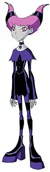 Jinx is a fictional supervillain appearing in American books published by DC Comics. Created by Marv Wolfman and Chuck Patton, she first appeared in Tales of the Teen Titans #56 (August 1985).[1] The character is often depicted as a skilled Indian sorceress and one of the leaders of the Fearsome Five, a group of super-villains most notable for being adversaries of the Teen Titans and it's derivaties. This character bears no relation to the male character of the same name who first appeared in Adventure Comics #488 as an adversary of Chris King and Vicki Grant.[2]