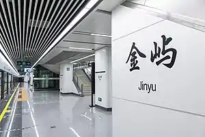 Jinyu Station (Chinese: 金屿站; pinyin: Jīnyǔ zhàn; Fuzhounese: [kiŋ˥˧ løy˨˦˨]) is a metro station of Line 2 of the Fuzhou Metro. It is located near the intersection of Guobin Avenue, Qishan Avenue and Xiyuangong Road, Minhou County, Fuzhou, Fujian, China. It started operation on April 26, 2019.[1][2]