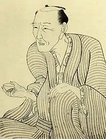 Jippensha Ikku (十返舎 一九, 1765 – September 12, 1831) was the pen name of Shigeta Sadakazu (重田 貞一), a Japanese writer active during the late Edo period of Japan. He was among the most prolific yellow-backed novel (黄表紙, kibyōshi) writers of the late Edo period — between 1795 and 1801 he wrote a minimum of twenty novels a year. He mainly wrote sharebon (洒落本), kokkeibon (滑稽本) and over 360 illustrated stories, (gōkan, 合巻 ).[1] He also helped create kokkeibon as a genre. Ikku was one of the most prolific writers of his time, and shaped the literary history that came after him.
