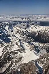 View of the Min Mountains as the plane approaches the Jiuzhai Huanglong Airport