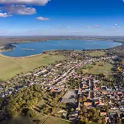 Joachimsthal is a small town in the district of Barnim, in Brandenburg, Germany. It is situated within the Schorfheide-Chorin Biosphere Reserve on the isthmus between the lakes Grimnitzsee in the north and Werbellinsee in the south, about 17 km (11 mi) northwest of the district's capital Eberswalde and 55 km (34 mi) northeast of the Berlin city centre. The municipality is the administrative seat of the Amt ("collective municipality") Amt Joachimsthal.