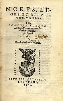 - "Boehme, Johann: Mores, Leges Et Ritus Omnium Gentium. - Lyon, 1541". Uni-mannheim.de. Retrieved 5 November 2013.