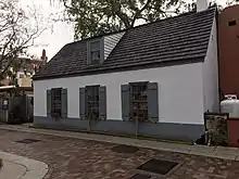 The Joaneda house was built around the year 1806 out of wood and was originally owned by Juan Joaneda, a Minorcan fish farmer.[1] The house had a wooden floor. Joaneda then rebuilt the house out of coquina and sold it for a profit to a Juan Gonzáles Montes de Oca. Around 1809, Montes de Oca sold the house to the son-in-law of Juan Joaneda.[2] The house's main entrance was the through the yard and the entire property was enclosed by a wall and fence, reconstructed in 1976. There were originally three rooms on the first floor with an open porch on the south side.