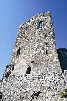 Louis I of Anjou finally decided to act and went to Avignon at the head of a powerful army on 31 May 1382 in order to rescue Joanna.[129] He passed through Turin and Milan. Towards the beginning of September, he was in Amatrice, near Rome. But by that time the Queen was already dead. Charles of Durazzo, thinking that he couldn't resist Louis I of Anjou, decided on 28 May 1382[130][131] that Joanna should be transferred from the Castello del Parco to the Castle of Muro Lucano held by Palamede Bozzuto, where she was killed on 27 July 1382, aged 56.[4][5]