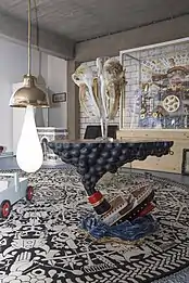 Under the direction of Job Smeets with a studio in Milan, Italy[12][13] and the atelier in Tilburg, Netherlands, Studio Job work across many areas including art, design, fashion, architecture, automotive and interior design having worked on projects including sculptures for Swarovski,[14] Barneys,[15] Viktor & Rolf[16] and Land Rover,[17] and product collections for brands such as Alessi,[18] Moooi,[19] Bisazza,[20] Swatch,[21] and Disaronno.[22] In 2017 Studio Job teamed up with Italian manufacturer Seletti to form the joint brand BLOW producing products in the pop spirit.[23] Job Smeets has produced work for various galleries including Carpenters Workshop Gallery,[5] Moss Gallery New York,[24][25] Dilmos Milano, Fondazione Bisazza[26] and Chamber New York[27][28] where he curated and coordinated the gallery's launch collection and book.[29]