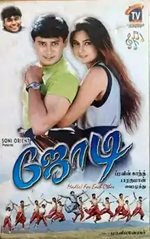 Jodi (transl. Couple) is a 1999 Indian Tamil-language romantic drama film directed by Praveen Gandhi and produced by Murali Manohar. The film stars Prashanth and Simran, with Vijayakumar, Nassar and Srividya in supporting roles. The soundtrack is composed by A. R. Rahman, featuring music reused from his own earlier soundtrack for the Hindi film Doli Saja Ke Rakhna, except for the song Oru Poiyavathu. Due to Rahman's unavailability, Praveen Gandhi signed Sabesh–Murali to quickly compose the background score. The film was the 25th film of Prashanth. The film was released on 9 September 1999. It opened to positive reviews and became a commercial success. A reviewer noted that "the director's light-veined screenplay keeps the movie moving at a good pace". The film was remade in Kannada in 2006 as Sajni.