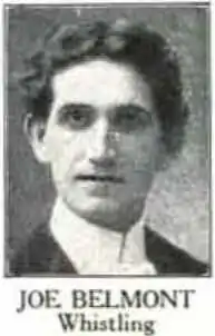 Joe Belmont was the stage name of Joseph Walter Fulton (July 22, 1876 - August 29, 1949) who was a whistling performer and baritone in the United States who came to be known as "The Human Bird".[1] He was one of the most popular recording artists in the years leading to 1900 and sang as a baritone and whistled for the Columbia Quartet along with Albert Campbell, Jim Reynard and Joe Majors. His top-selling records included "Beautiful Birds, Sing On", "Tell Me, Pretty Maiden" (with Byron G. Harlan, Frank C. Stanley, and the Florodora Girls, Columbia 31604, 1901).[2]
