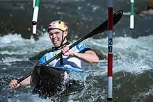 Joseph Clarke, MBE (born 3 November 1992) is a British slalom canoeist who has competed at the international level since 2009, specializing in the K1 (kayak) and KX1 (extreme kayak/kayak cross) events.[2] He is the 2016 Olympic champion in the K1 event,[3] a double World champion in the kayak cross discipline, and has won medals at World and European Championships.
