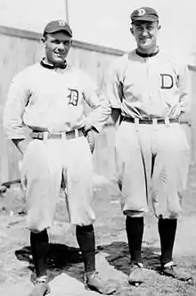 ![]() Joe Cobb (left) standing with teammate Ty Cobb (right) | |