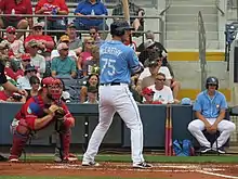 The Rays invited McCarthy to spring training in 2018.[2][9] He spent the 2018 season with the Durham Bulls of the Class AAA International League,[10] with whom he batted .269/.377/.513, and then played for the Peoria Javelinas of the Arizona Fall League.[11] The Rays added him to their 40-man roster after the season.[12]