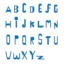 Introduced in 2018, Palermo is a full upper- and lower-case typeface, the letter forms of which were made by cutting up and rearranging the two component parts of Blinky Palermo's painted object "Blau Scheibe und Stab" (1968).[51]