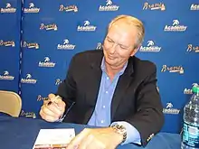 ![]() Joe Simpson signing autographs for Atlanta Braves fans in 2012 | |