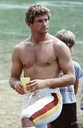 In 1974, the Washington Redskins obtained Theismann's rights from the Dolphins in exchange for the team's first-round draft pick in 1976 (the Dolphins selected linebacker Larry Gordon with the pick).[21] Theismann left the CFL and joined the Redskins, where he served as the team's punt returner during his first season.[22] In 1978, Theismann became the Redskins' starting quarterback, succeeding Billy Kilmer.
