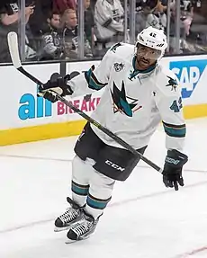 As the Sharks prepared to play in the 2016 Stanley Cup Finals against the Pittsburgh Penguins, Ward spoke to ESPN, stating that the NHL's first Black player, retired fellow right winger Willie O'Ree, should have his player number 22 retired by the NHL league-wide, just as Jackie Robinson, the first player of colour in Major League Baseball has been honoured—and whom O'Ree had met in person in his own younger years—[17] by having his own player number 42 retired league-wide.[18]