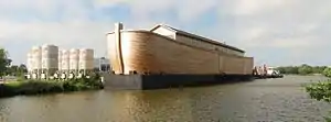 Johan's Ark is a Noah's Ark-themed barge in Dordrecht, Netherlands, which was built by the Dutch building contractor, carpenter and creationist Johan Huibers.[1] It is a full-scale interpretation of the biblical Ark, featuring animal models, including cows, penguins, a crocodile, and a giraffe. It opened to the public in 2012.