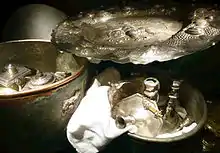 It was likely Adolf and Johanna Lohe who hid the great Lohe Treasure (Loheskatten) under the floor of the house during the Dalecarlian rebellion (1743). Excavated in 1937, the treasure consisted of 85 silver pieces and just over 18,000 silver coins dating from the early to mid-17th century. Today, the treasure is exhibited at the Stockholm City Museum and in the Royal Coin Cabinet. [5] [6]