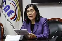 Johana Farina Pesántez Benítez (born 20 November 1975) is an Ecuadorian politician, she was Minister of Justice, Human Rights and Religious Affairs between 13 May 2011 and 18 June 2013. Since 24 May 2017 she has been judicial advisor to President Lenín Moreno.