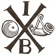 Johann Balhorn the Younger (sometimes mistakenly spelled Ballhorn) (born 1550, died after 1604) was a German printer in Lübeck. He followed his father, Johann Balhorn the Elder in the printing trade, from whom he took over the printing house. Both used as a monogram the pictured printer's mark and a seal with a horn and three balls. In a play on their name the German word verballhornen, which means "parody", was coined.