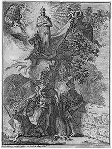 1738/39 was in the painting of Eichstätt for the high altar of the Schutzengelkirche It is Holzer's largest painting on canvas (H: 8,36 m; B: 4,28 m) and impresses through movement, gesture, a dynamic composition, and a sophisticated lighting design. Although there are two pictures (side altars) signatures of Bergmüller, they will Holzer, assigned by the archives occupied painter of the high altar painting.[1]