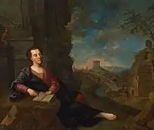With the intention of becoming a physician, in 1740 Winckelmann attended medical classes at Jena. He also taught languages. From 1743 to 1748, he was the deputy headmaster of the gymnasium of Seehausen in the Altmark but Winckelmann felt that work with children was not his true calling. Moreover, his means were insufficient: his salary was so low that he had to rely on his students' parents for free meals. He was thus obliged to accept a tutorship near Magdeburg.[14] While tutor for the powerful Lamprecht family, he fell into unrequited love with the handsome Lamprecht son.[6] This was one of a series of such loves throughout his life.[15] His enthusiasm for the male form excited Winckelmann's budding admiration of ancient Greek and Roman sculpture.[15]