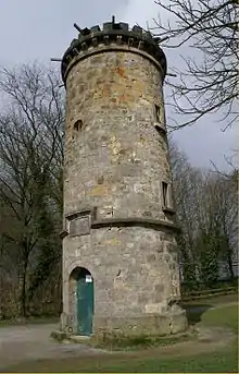 Weyer signed all his correspondence with "Johannes Wier" or occasionally with "Piscinarius".[7] His parents and children carried the name "Wier" as well, and in 1884 his memorial in Germany was still named "Wierturm" rather than "Weyerturm". Nevertheless, since the 20th century the name "Johann Weyer" has become standard in German and English-language scholarship. The use of "Weyer" may stem from Carl Binz's 1896 monograph "Doctor Johann Weyer, ein rheinischer Arzt, der erste Bekämpfer des Hexenwahns", who in 1885 had already given a lecture "Wier oder Weyer?", in which he, apparently unaware of Weyer's Zeeland origin, claimed that Weyer zur deutchen Nation zählte and Wier was merely a Niederrheinische dialect pronunciation of Weyer.[8]