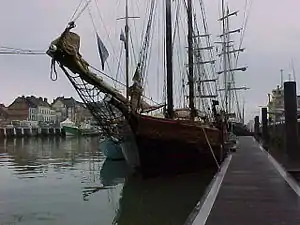 The Johanna Lucretia is a British tall ship and is an oak wooden two masted topsail schooner built at the Rhoos Shipyard, Ghent in Belgium in 1945. The Johanna Lucretia measures 96 ft (28.65m) in length, her beam is 18 ft (5.50m), her draught is 8 ft (2.45m) and she has a total sail area of 380 m2.