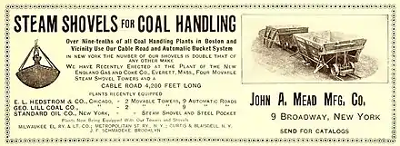 The John A. Mead Manufacturing Company was based at 9 Broadway in New York City and produced steam shovels for coal handling.
