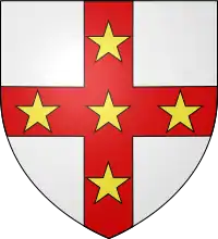 Arms of John Ap Adam: Argent, on a cross gules, five mullets or.