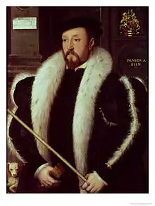 Nothing is known of John Bettes's life, except that he was living in Westminster in 1556, according to a documented court case.[2] He is first recorded as working for Henry VIII at Whitehall Palace in 1531. Queen Catherine Parr's accounts for 1546/47 record payments to Bettes for "lymning" (painting in miniature) the king's and queen's portraits, and for six other portraits.[2] Her new year's gift of 1547 to Prince Edward was a pair of portraits of the king and herself.[3] Bettes has been identified as the designer of the engraved title-border for William Cuningham's Cosmographical Glasse, printed by John Day in 1559. He may also be the designer of engravings for Edward Hall's Chronicle, published in 1550, and of a woodcut portrait of Franz Burchard, the Saxon ambassador to England, published in 1560. In 1576, John Foxe referred to Bettes as already dead.[2][4] An earlier second edition of Foxe's Actes and Monuments printed in 1570 refers to Bettes' death.[5]