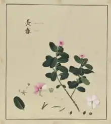 He devoted his spare time in Canton to natural science, particularly botany, as well as some attempts to record and study Chinese language and culture.[1][9] His plan was to procure the seeds of commercially useful plants found in China and to send to Europe and the Americas these seeds and the plants producing them. His idea was that they might be propagated in Great Britain and Ireland as well as in the British colonies.[10] As discussed further below, Blake's scheme was in many ways successful. Cochinchina rice was grown in Jamaica and South Carolina; the tallow-tree prospered in Jamaica, Carolina, and in other American colonies;[11] and many of the plants he sent to Britain were also raised in several botanical gardens near London. He also sent to England some specimens of fossils and ores.[10]