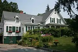 The John Brooks House is located in a basically residential area in northern Worcester, on a large lot at the northwest corner of Nelson Place and Grove Street (Massachusetts Route 122A). It is a 1+1⁄2-story wood-frame structure, with a roughly T-shaped plan covered by gabled roofs. The south facade distinctively has three large gables which rise to nearly meet the main ridge line, with rake edges adorned by paired Italianate brackets. A single-story hip-roofed enclosed porch extends across part of this facade, with an entrance at the far right sheltered by an ornately carved hood. Facing Nelson Place, the gable end of the main block is also adorned with brackets. A less elaborate ell with a lower pitch roof extends to the west.[2]