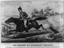 ![]() "The Escape of Sergeant Champe": Lithograph: New York: Currier & Ives, c. 1876. | |