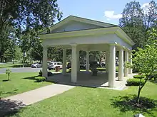 Clarke built a doric pavilion to cover Congress Spring, which was torn down in 1876 when Frederick Law Olmsted redesigned the park and reconstructed in the 1970s.[3]