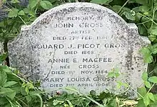 He is buried in a family grave above the Terrace Catacombs on the west side of Highgate Cemetery.