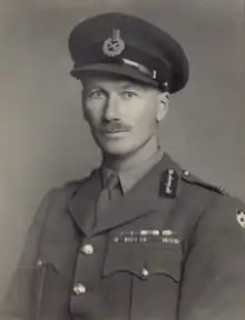 He served again in the Second World War, commanded 9th Armoured Division in the UK from 1942 onwards. After the division was disbanded in 1944, he was promoted to the rank of Lieutenant-General and became General Officer Commanding British Forces in Palestine and Trans-Jordan from 1944.[4][6] He retired in 1946.[7]