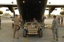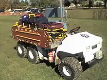 In 1997, the U.S. Army adopted a version of the Gator known as the M-Gator.[4][5] The M-Gator is now also in use with the U.S. Marine Corps.[6] Following the upgrades of the original Gator, it is known in its current version as the M-Gator A1, and features upgrades such as rollover protection.[6][7] It is the 6x4 variant, and uses the three-cylinder Yanmar diesel engine found in other Gator vehicles, and is also capable of using JP-8 fuel.[5][7] The vehicle is capable of being air-dropped.[5] The Gator has been used in Iraq and Afghanistan for supply deliveries and casualty evacuation, as it is more nimble off-road than an HMMWV.[5] Although the M-Gator was not designed to carry equipment in the field, troops would put their gear onto the vehicles to lighten their loads when an M-Gator was available to them.[8] M-Gators are also used by Canadian Forces in Afghanistan.