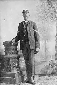 Rank and organization: Sergeant, Company C, 9th U.S. Cavalry. Place and date: At Las Animas Canyon, N. Mex., September 18, 1879. Entered service at: 1867 Elmira, N.Y. Birth: Big Flats, N.Y. Date of issue: November 27, 189i.