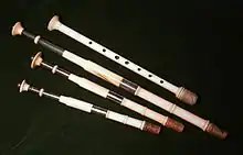 John Dunn (ca. 1764–1820) was a noted pipemaker, or maker of bagpipes. Born in Newcastle upon Tyne, England, Dunn was a cabinet maker by profession, initially a junior partner with George Brummell.[1] In the trade directories, he also appears in his own right as a turner (Whitehead 1790) and a plumb maker and turner (Mackenzie & Dent 1811). His address was Bell's Court, off Pilgrim Street. He was buried on 6 February 1820 in St. John's, Newcastle. His father may have been one John Dunn of Longhorsley; if so, he was born on 3 September 1764. He should not be confused with one M. Dunn, the maker of several surviving sets of Union pipes.