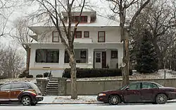 The John E. and Ruth Hipple House is a historic house located at 219 N. Highland in Pierre, South Dakota. Built in 1913, the Prairie School house features a roof with a low pitch and overhanging eaves, a front porch, and a horizontal emphasis throughout its design. The home was originally owned by John E. and Ruth Hipple, both of whom were prominent Pierre citizens. John served as Pierre's mayor from 1924 to 1939 and owned the Capital Journal, while Ruth was an important figure in the local women's suffrage movement.[2]